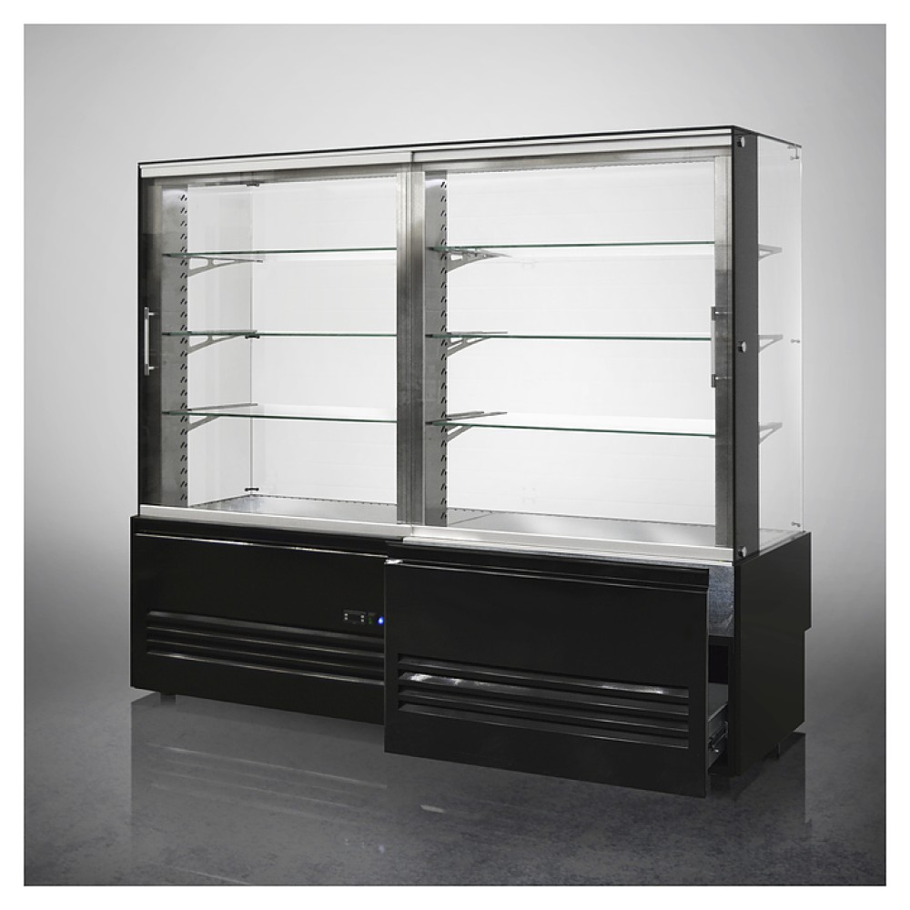 Напольная холодильная витрина Finist AIR DOUBLE AD-160-7-163 среднетемпературная предназначена для экспозиции и временного хранения кондитерских изделий. Доступ к продукции осуществляется с помощью раздвижных дверей купе. Конструкция позволяет размещать продукцию на трех стеклянных полках и дне витрины. В стандартном оснащении комплектуется боковыми стеклами и фасадами, которые имеют съемную конструкцию. Корпус изготовлен из крашеной стали.