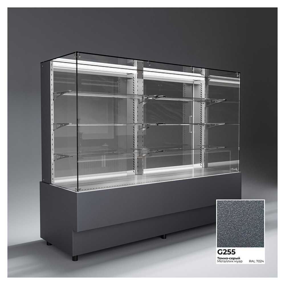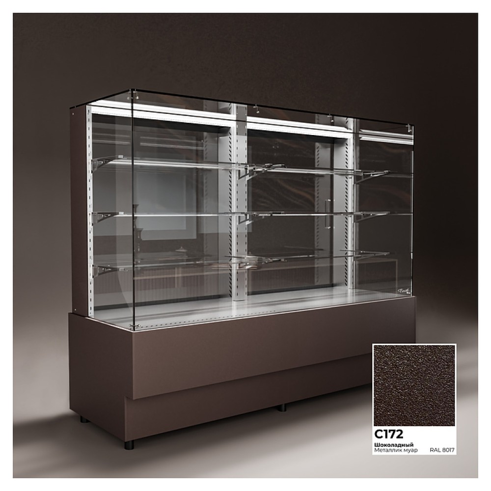 Напольная холодильная витрина Finist AIR DOUBLE AD-200-7-163 среднетемпературная предназначена для экспозиции и временного хранения кондитерских изделий. Доступ к продукции осуществляется с помощью раздвижных дверей купе. Конструкция позволяет размещать продукцию на трех стеклянных полках и дне витрины. В стандартном оснащении комплектуется боковыми стеклами и фасадами, которые имеют съемную конструкцию. Корпус изготовлен из крашеной стали.