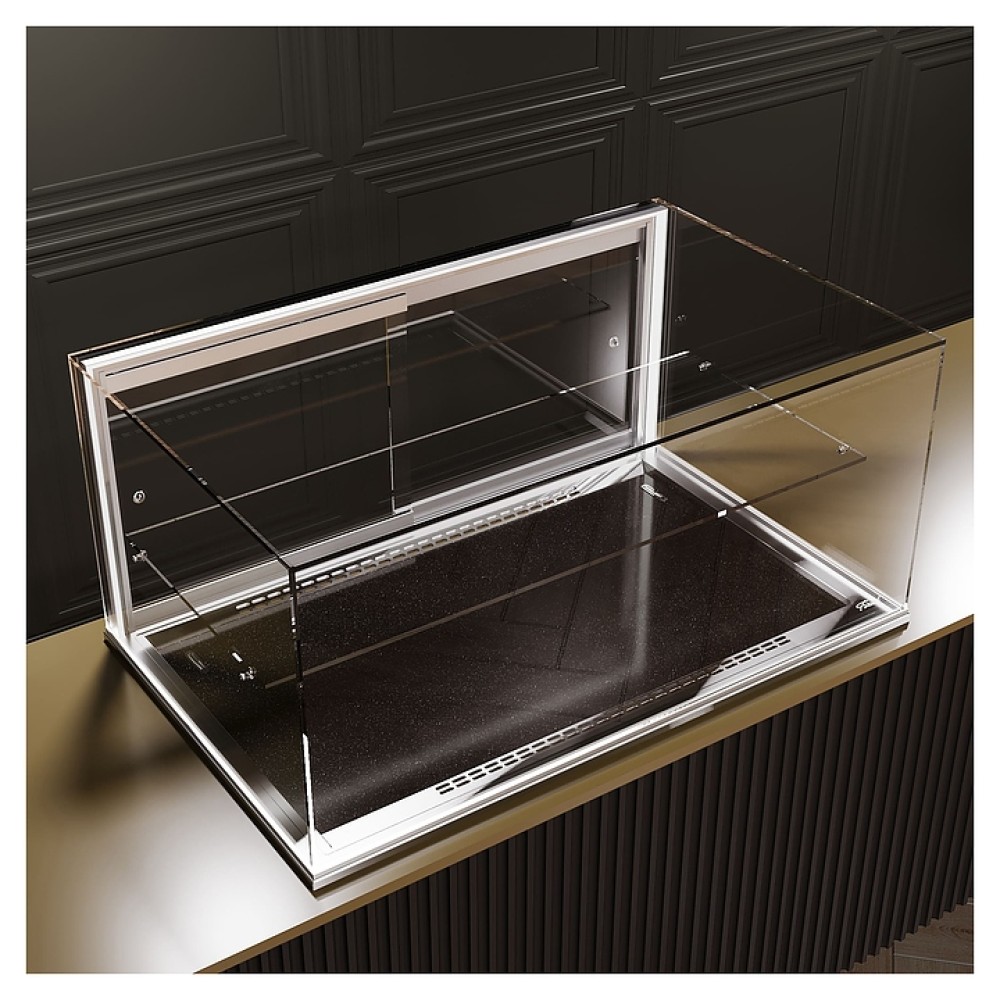 Встраиваемая горизонтальная кондитерская витрина Finist Glassier812 Stone Gst812-15/65/5 предназначена для кратковременного хранения и предпродажной демонстрации кондитерских изделий на предприятиях общественного питания и торговли. Модель оснащена закрытой холодильной камерой с навесной полкой, скрытыми под основанием камеры агрегатным отсеком, кабелем питания с вилкой и электромеханической панелью управления. Основание камеры выполнено из высококачественной нержавеющей стали с серебристой зеркальной поверхностью, столешница для выкладки – из искусственного камня, корпус агрегатного отсека – из стали с антикоррозийным покрытием белого цвета (RAL 9016).