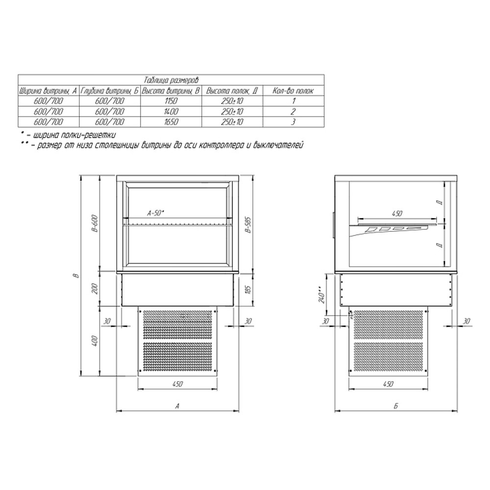 Встраиваемая вертикальная кондитерская витрина Finist SIENNA Si-67/815 предназначена для кратковременного хранения и предпродажной демонстрации кондитерских изделий и выпечки на предприятиях общественного питания и торговли. Модель оснащена 2 полками и светодиодной подсветкой. Каркас выполнен из крашеной стали муар, купол - из стекла.