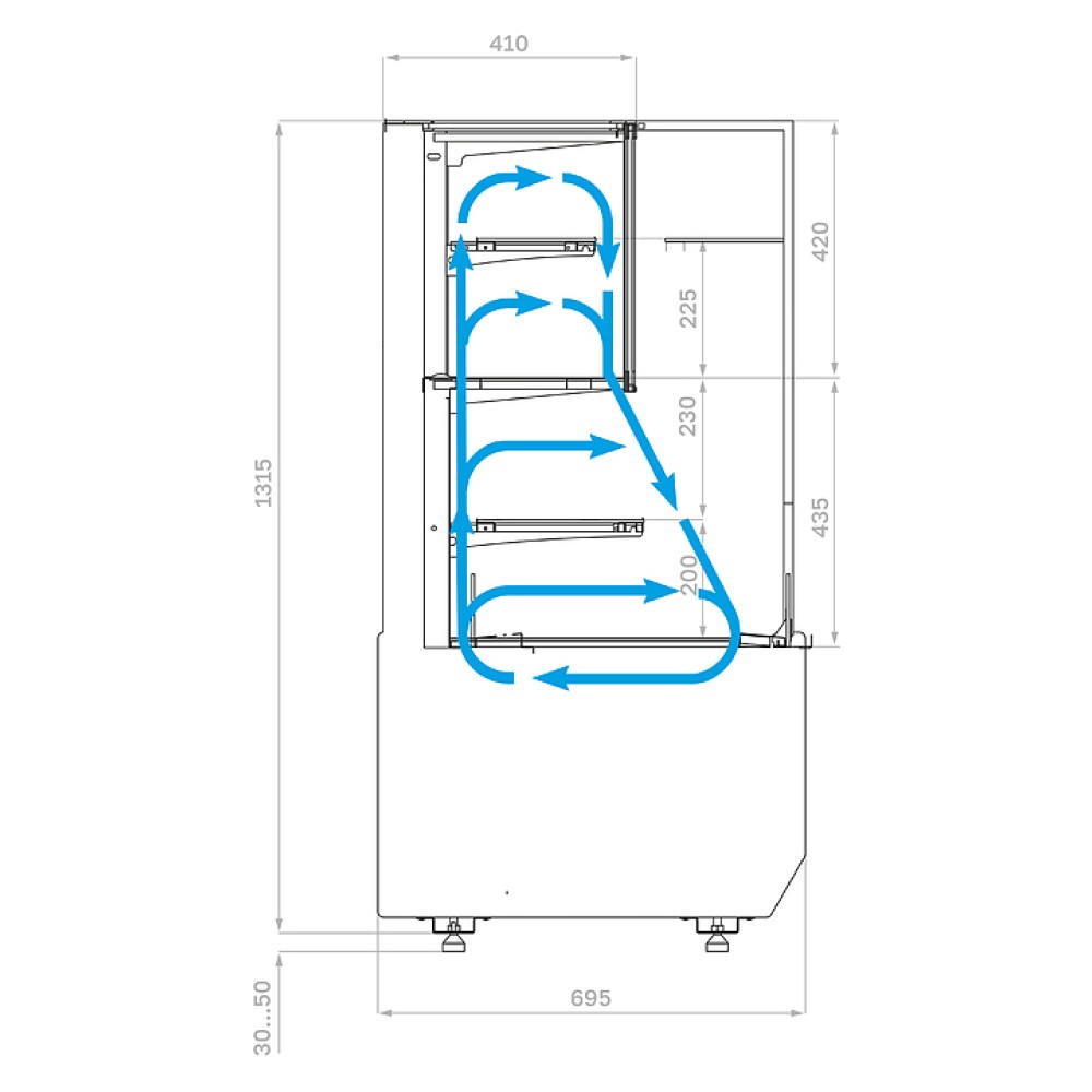 Кондитерская комбинированная витрина Carboma KC70 VV/VV 0,6-2-1 Standard боковина прямая версия 2.0 используется на предприятиях общественного питания и торговли для демонстрации, охлаждения и кратковременного хранения закусок, напитков, пиццы, хлеба, шоколада, выпечки и десертов. Модель оснащена 2 отдельными охлаждаемыми отсеками. Верхний объем оснащен дверьми-сладер с задней стороны витрины и дополнительной полкой. Нижний объем предназначен для самообслуживания и оснащен стационарной выкладкой и навесной полкой. Корпус выполнен из стали, термоизоляция корпуса - из пенополиуретана, остекление - из стеклопакетов, задние створки-слайдер верха - из стеклопакета, задняя стенка низа - из металла, полка из стекла.