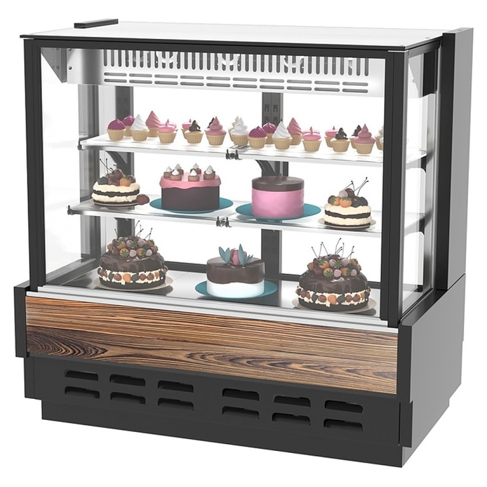Кондитерская холодильная витрина Lida Kandi Plus (1280х720х1300 мм) используется на предприятиях общественного питания и торговли для кратковременного хранения и предпродажной демонстрации тортов, пирожных и других кондитерских изделий. Модель прямоугольно ориентированной формы оснащена подставкой с фронтальной термовыводящей решеткой. Наружные и внутренние поверхности выполнены из нержавеющей и оцинкованной стали с антикоррозийным покрытием порошковой эмалью, навесные полки – из прозрачного стекла.