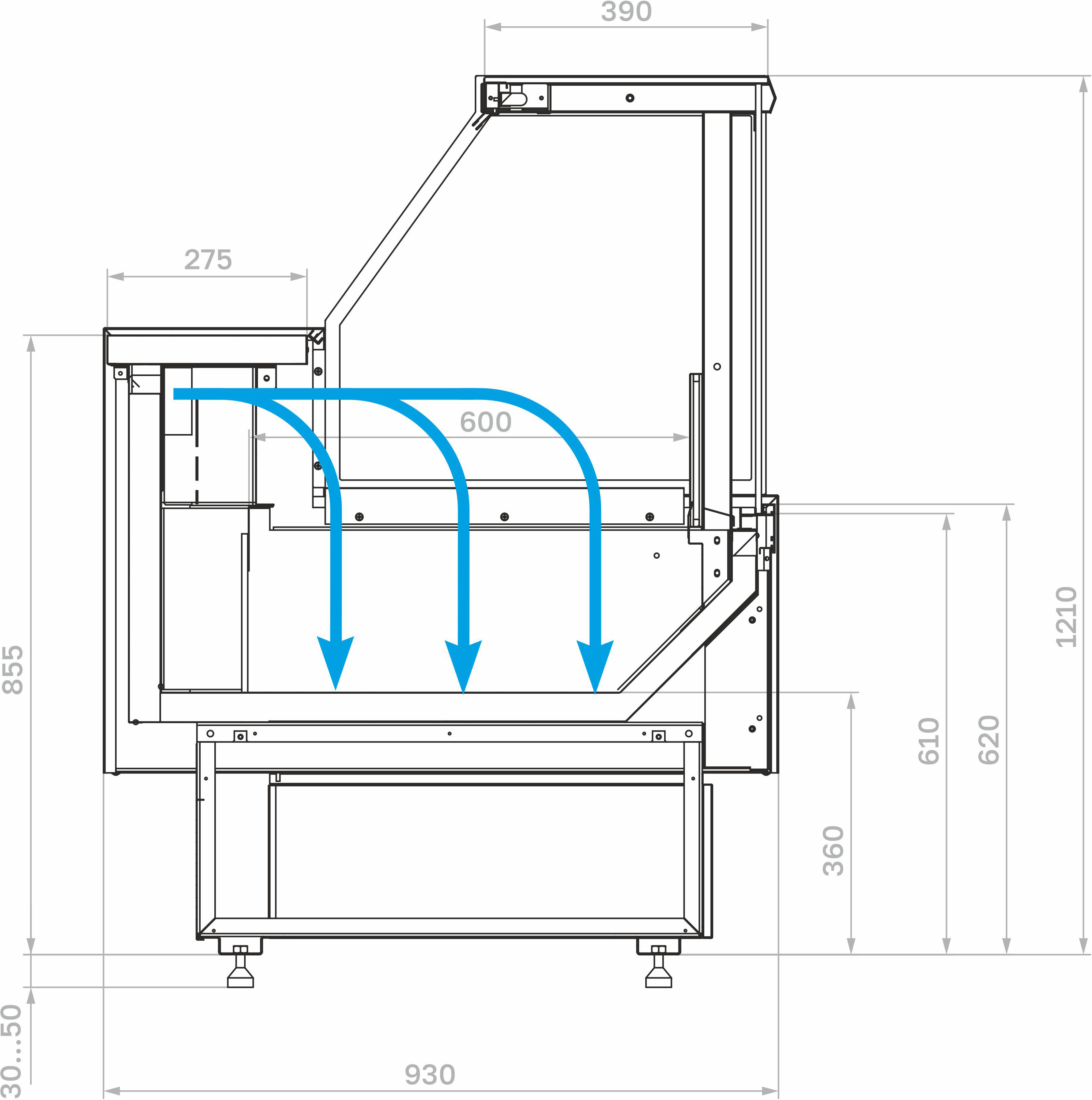 Модель без боковин предназначена для установки нескольких витрин в линию и не может использоваться как отдельностоящая. При заказе нескольких моделей для установки в линию достаточно приобрести две боковины для первой и последней витрины.