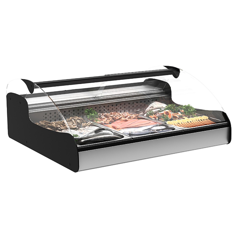 Холодильная витрина Carboma А89 SV 1,0-1 (ВХСр-1,0 Арго XL Техно) используется на предприятиях общественного питания и торговли для демонстрации, охлаждения и кратковременного хранения кондитерских изделий и десертов "семифредо", а также свежей рыбы. Модель онащена гнутым передним стеклом и ночными шторками. Корпус выполнен из стали с ППУ-теплоизоляцией, столешница и экспозиционная поверхность - из нержавеющей стали.