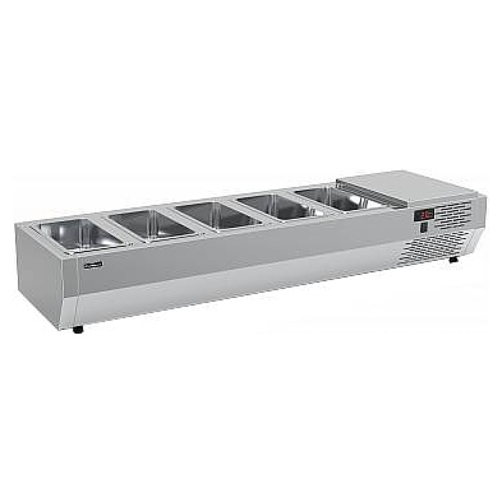 Холодильная витрина Carboma IDO IDO A40 SM 1,4 (5 GN1/3) используется на предприятиях общественного питания и торговли для охлаждения и кратковременного хранения ингредиентов для салатов. Модель оснащена электронным блоком управления. Корпус выполнен из нержавеющей стали, теплоизоляция - из пенополиуретана.