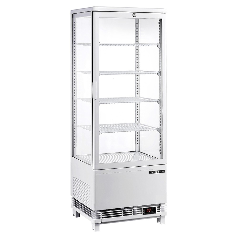 Холодильная витрина Cooleq CW-98 предназначена для демонстрации, охлаждения и кратковременного хранения продуктов и напитков на предприятиях общественного питания и торговли. Модель оснащена регулятором температуры, замком, 4 регулируемыми по высоте хромированными полками и LED-подсветкой.