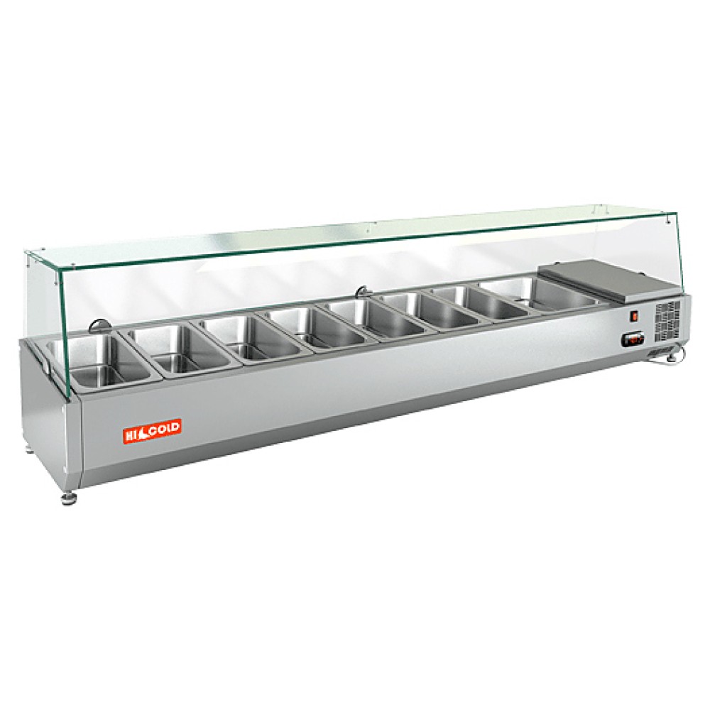 Настольная холодильная витрина HICOLD VRTG 1835 используется на предприятиях общественного питания и торговли для демонстрации, охлаждения и кратковременного хранения салатов, гарниров, закусок и других готовых блюд. Модель оснащена стеклянной надстройкой и специальным креплением для стола. Изделие выполнено из нержавеющей стали.
