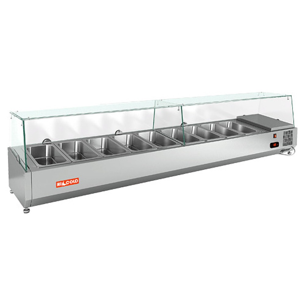 Настольная холодильная витрина HICOLD VRTG 2495 (1/3) используется на предприятиях общественного питания и торговли для демонстрации, охлаждения и кратковременного хранения салатов, гарниров, закусок и других готовых блюд. Модель оснащена электронной панелью управления, стеклянной надстройкой и опорными ножками. Корпус выполнен из нержавеющей стали.
