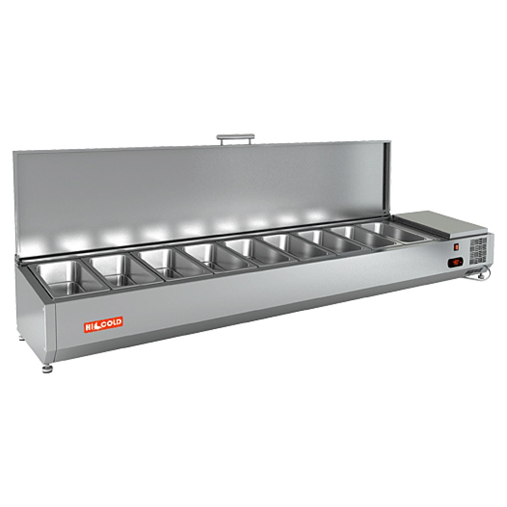 Настольная холодильная витрина HICOLD VRTU 1970 используется на предприятиях общественного питания и торговли для демонстрации, охлаждения и кратковременного хранения салатов, гарниров, закусок и других готовых блюд. Модель оснащена крышкой и специальным креплением для стола. Изделие выполнено из нержавеющей стали.