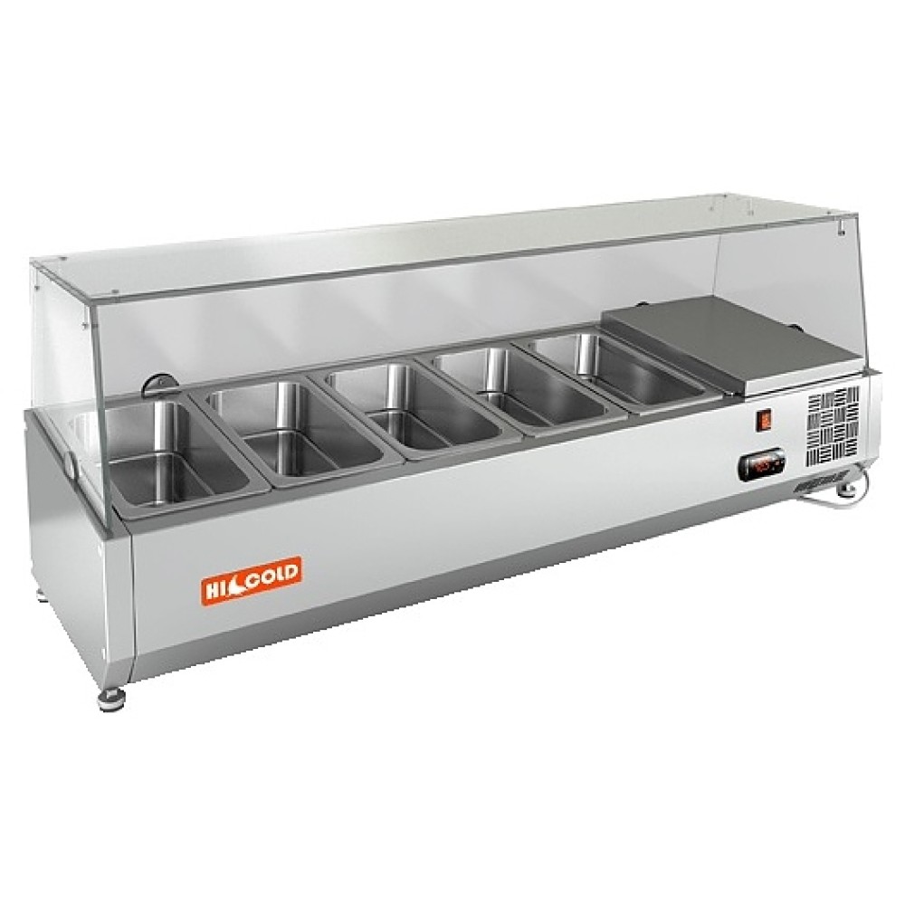 Настольная холодильная витрина HICOLD VRX 1200 используется на предприятиях общественного питания и торговли для демонстрации, охлаждения и кратковременного хранения салатов, гарниров, закусок и других готовых блюд. Модель оснащена стеклянной надстройкой и ножками. Изделие выполнено из нержавеющей стали.