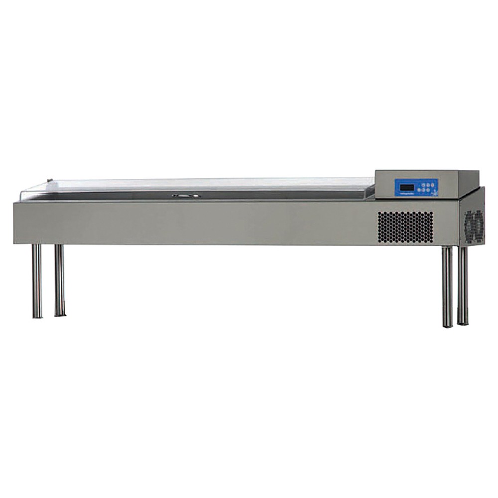 Холодильная витрина OZTI PZC54.H0 NTS предназначен для демонстрации, охлаждения и кратковременного хранения ингредиентов для пиццы и салатов на предприятиях общественного питания, а также в цехах, деятельность которых связана с производством гастрономических товаров. Корпус и камера выполнены из нержавеющей стали, изоляция - из полиуретана.