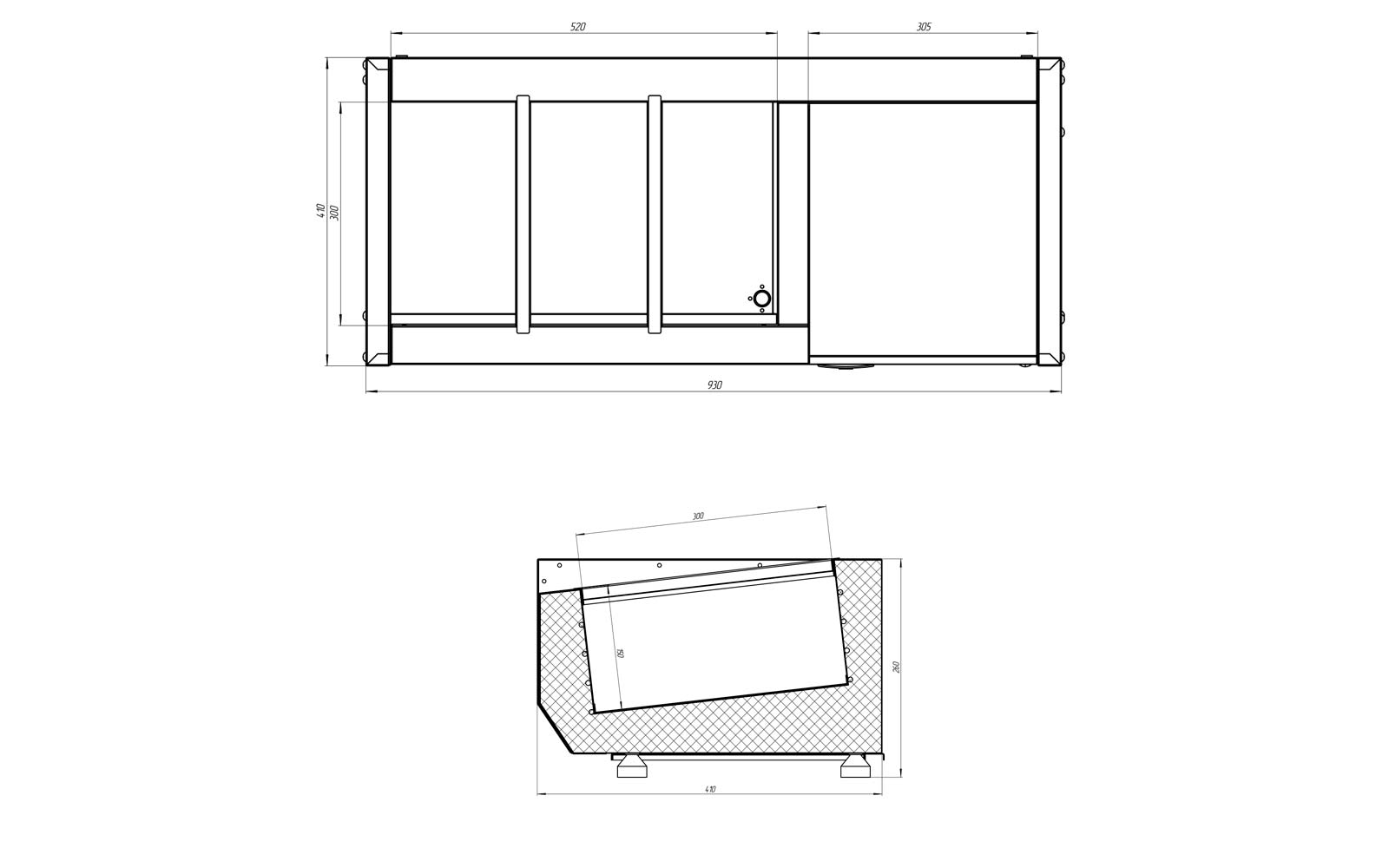 | Высота260 мм | Глубина411 мм | Ширина930 мм |