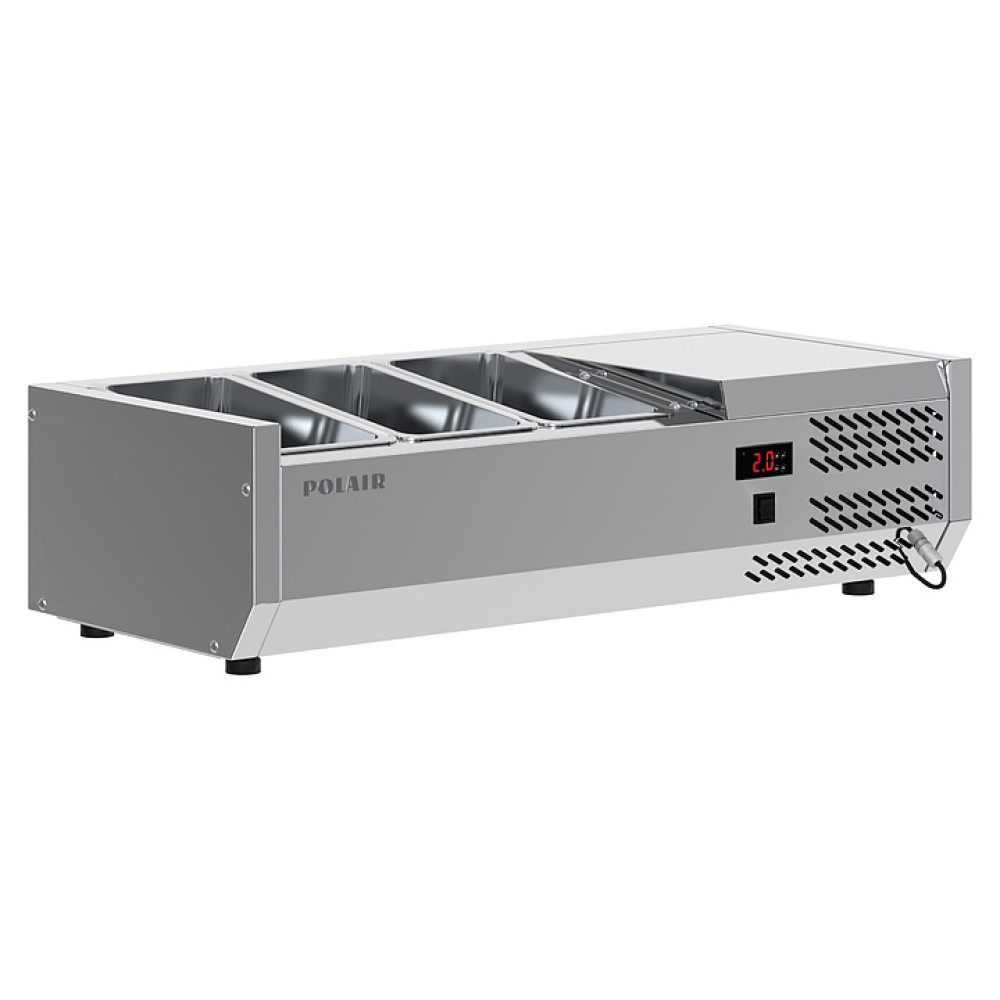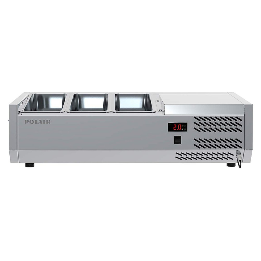 Холодильная витрина POLAIR VT1EN 1/3 предназначена для демонстрации, охлаждения и кратковременного хранения ингредиентов для пиццы и салатов на предприятиях общественного питания и торговли. Обшивка корпуса шкафа изготовлена из нержавеющей стали и обеспечивает механическую прочность и долговечность витрины. Оборудование рассчитано на работу при температуре окружающей среды до 32 °C и относительной влажности воздуха до 80%.