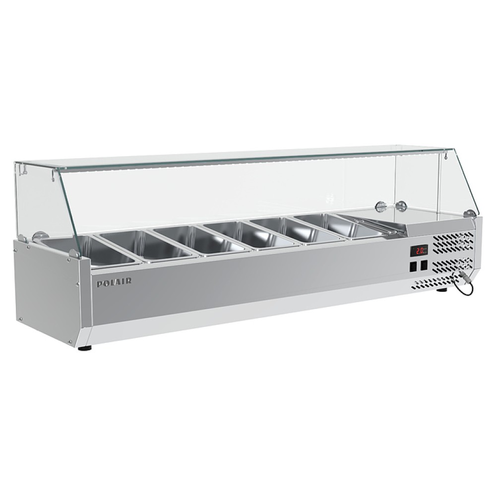 Холодильная витрина POLAIR VT2vEN 1/3 предназначена для демонстрации, охлаждения и кратковременного хранения ингредиентов для пиццы и салатов на предприятиях общественного питания и торговли. Модель оснащена стеклянным защитным колпаком. Обшивка корпуса шкафа изготовлена из нержавеющей стали и обеспечивает механическую прочность и долговечность витрины. Оборудование рассчитано на работу при температуре окружающей среды до 32 °C и относительной влажности воздуха до 80%.