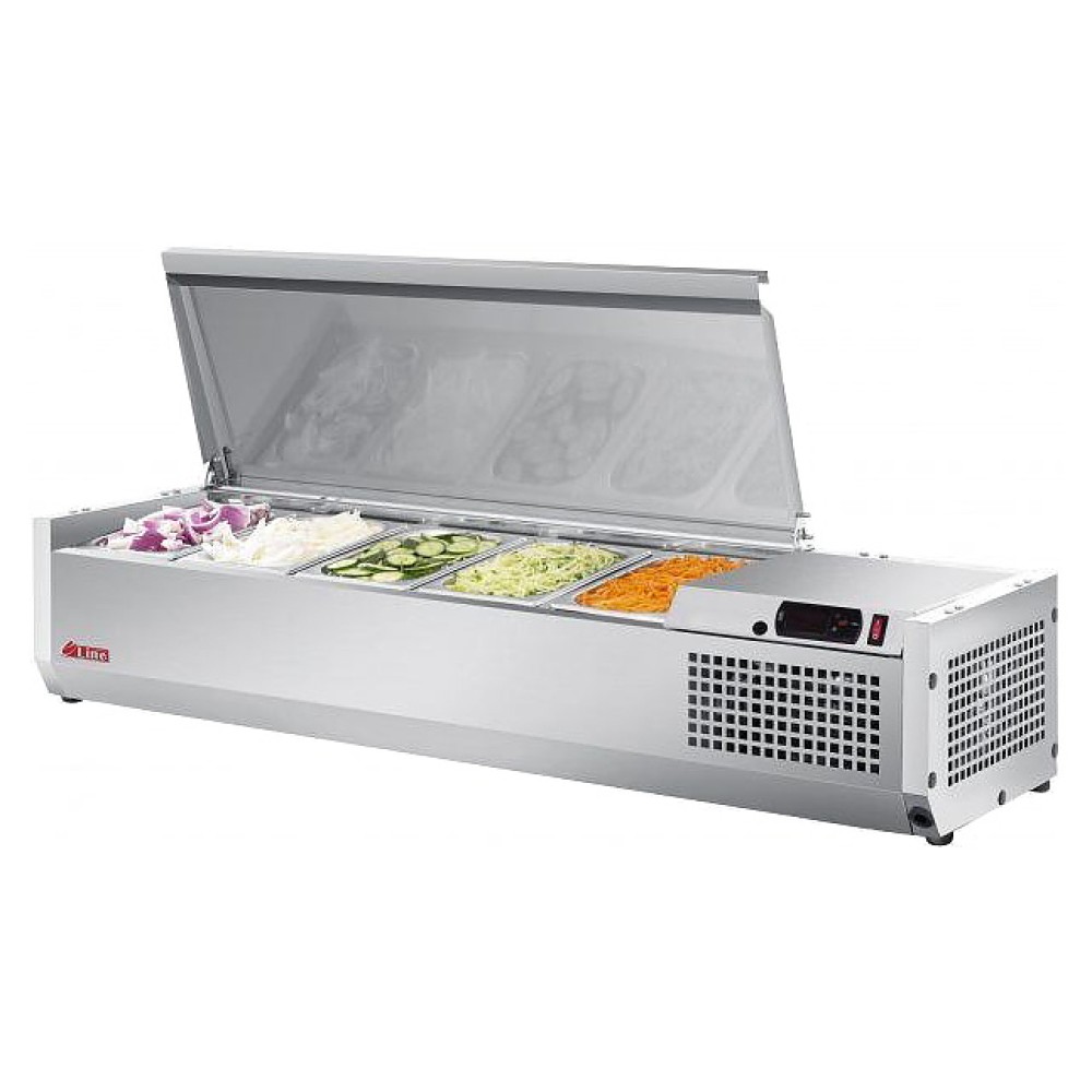 Настольная холодильная витрина Turbo air CTST-1200 используется на предприятиях общественного питания и торговли для демонстрации и кратковременного хранения ингредиентов, салатов и готовых блюд в гастроемкостях. Модель оснащена цифровым дисплеем температуры на передней панеле и компрессором с боковым креплением. Корпус и крышка выполнены из нержавеющей стали, ножки из ABS-пластика, изоляция - из полиуретана высокой плотности.