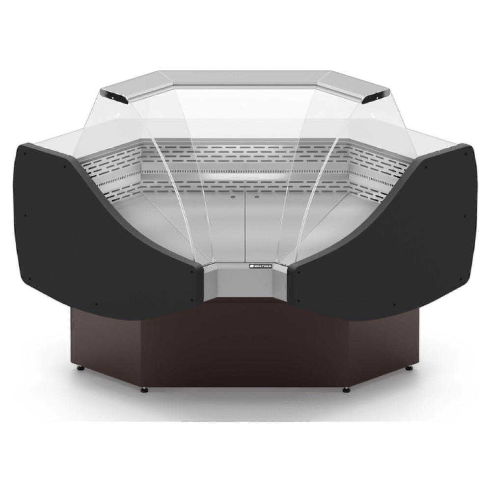 Холодильная итрина Арктика КВС U-V предназначена для демонстрации, охлаждения и кратковременного хранения мяса, птицы, колбасных, молочных и гастрономических изделий на предприятиях общественного питания и торговли. Модель имеет угловую форму, оснащена электронный блоком управления, гнутым стеклом и устойчивыми ножками. Выкладка, столешница, плафон и передняя панель выполнены из нержавеющей стали АISI 304.