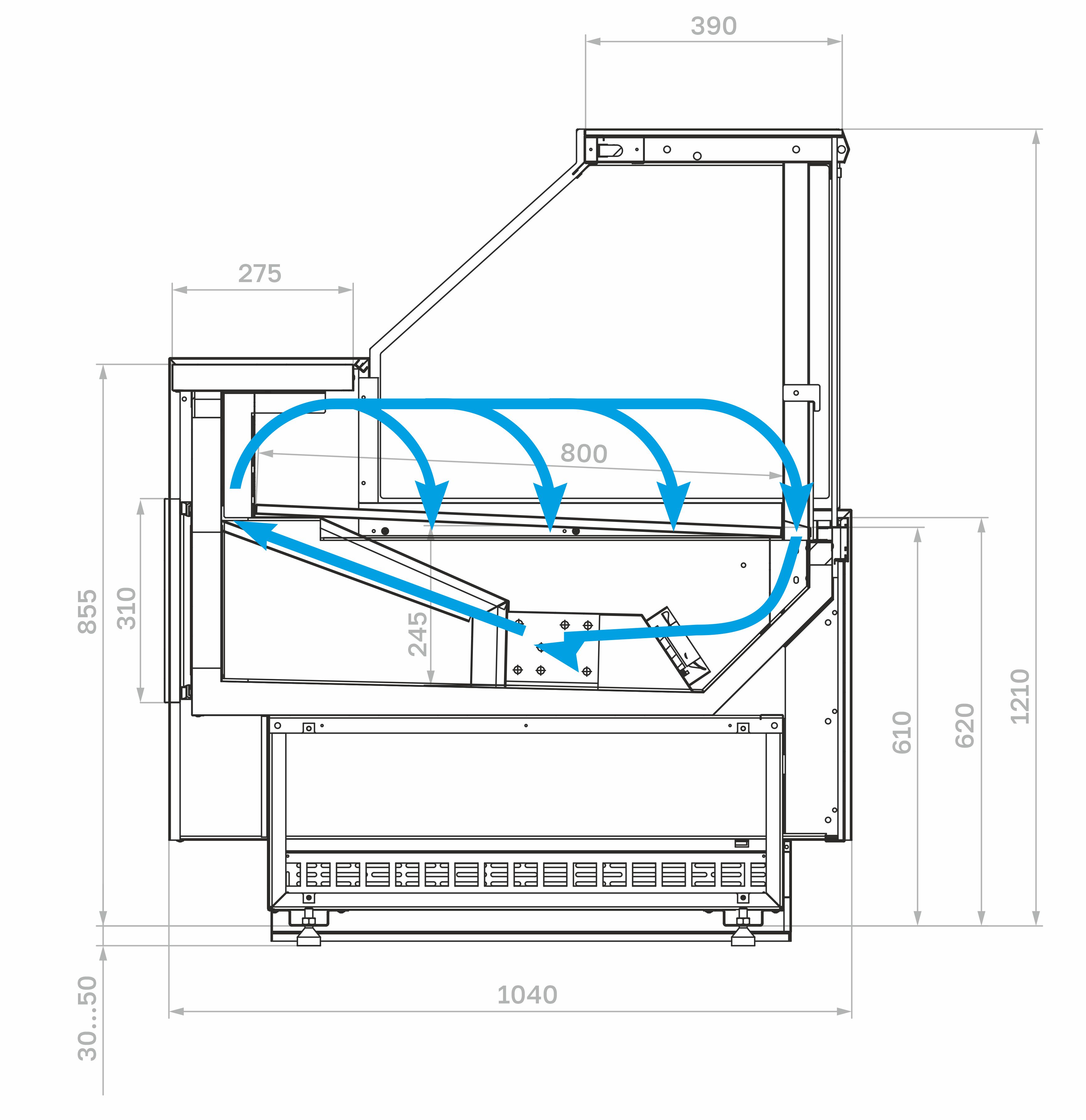 Отдельностоящие витрины приобретаются только вместе с боковинами. При заказе нескольких витрин с одинаковым температурным режимом для установки в линию достаточно заказать 2 боковины на всю линию.