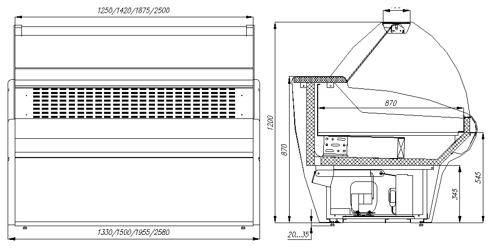 | Высота1200 мм | Глубина1100 мм | Ширина2580 мм |