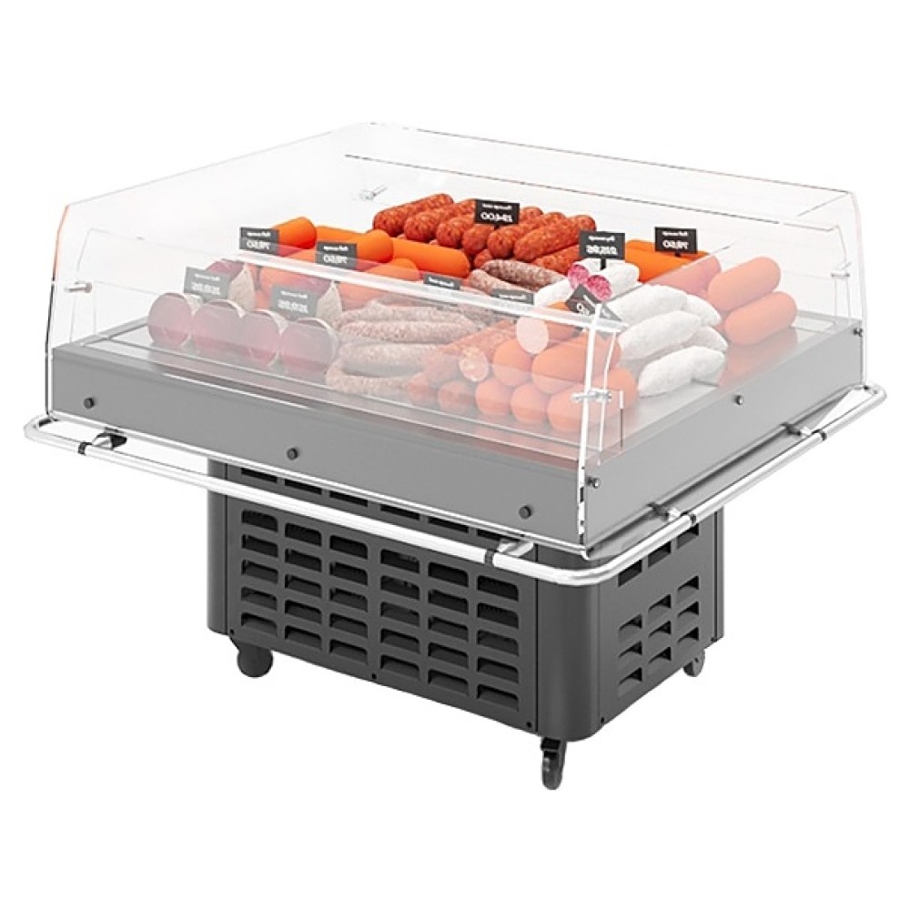 Холодильная витрина Lida PROMO S-1 (1220х1140х953 мм) используется для кратковременного хранения и предпродажной демонстрации колбас, сыров, молочной продукции, кондитерских изделий и других гастрономических товаров при проведении промоакцияй и презентаций на предприятиях общественного питания и торговли. Модель прямоугольно ориентированной формы оснащена подставкой с втроенным холодильным агрегатом на базе компрессора Aspera и отбойником по периметру. Корпус подставки выполнен из оцинкованной стали с антикоррозийным покрытием порошковой эмалью, отбойник – из профиля трубы круглого сечения из нержавеющей стали, теплоизоляция – из пенополиуретана высокой плотности.