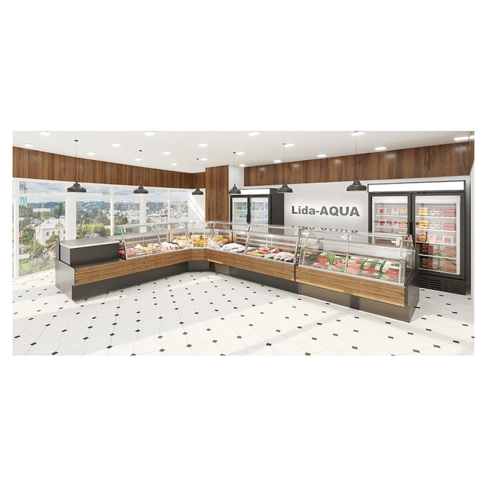 Холодильная витрина Lida Aqua-1 SU (1500х1250х1200 мм) используется на предприятиях общественного питания и торговли для кратковременного хранения и предпродажной демонстрации мясной продукции и других гастрономических товаров. Модель оснащена подставкой с фронтальной термовыводящей решеткой и внешней полкой со стороны продавца. Наружные и внутренние поверхности выполнены из нержавеющей и оцинкованной стали с антикоррозийным покрытием порошковой эмалью, внешняя полка, экспозиционная поверхность и ТЭНы оттайки – из нержавеющей стали, боковые панели – из оцинкованной стали с пенозаливной изоляцией, ночные шторки – из оргстекла.