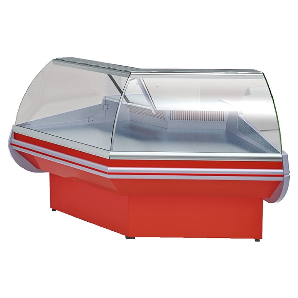 Угловая холодильная витрина Премьер ВСУП1-0,22ТУ/F1в-УН предназначена для демонстрации, охлаждения и кратковременного хранения продуктов питания, кондитерских изделий, напитков и других гастрономических изделий на предприятиях общественного питания и торговли. Корпус, боковины и столешница изготовлены из заливного пенополиуретана, экспозиционные полки - из шлифованной нержавеющей стали, держатели переднего стекла и ламподержатель в виде полки - из алюминия.