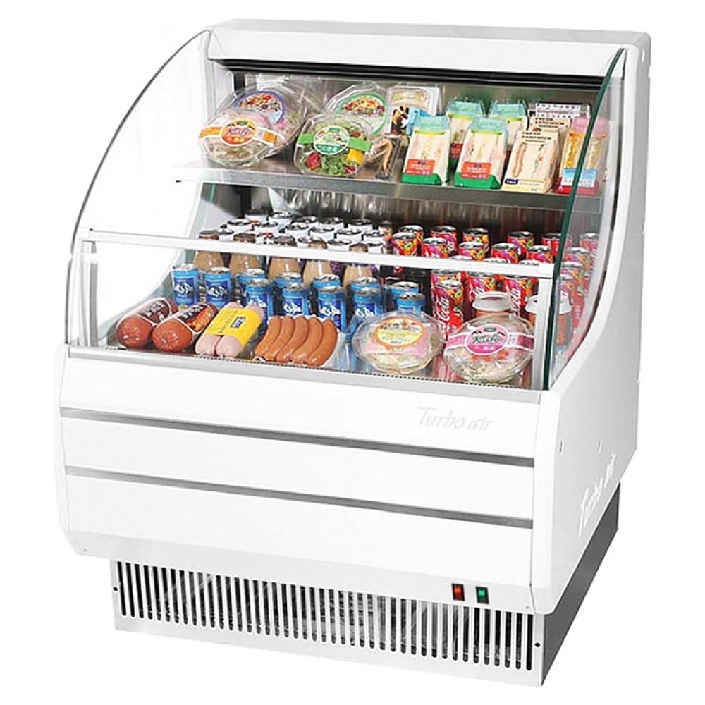 Горизонтальная открытая холодильная витрина Turbo air TOM-30L используется на предприятиях общественного питания и торговли для охлаждения, кратковременного хранения, демонстрации и продажи напитков, продуктов питания, салатов и других гастрономических изделий. Модель оснащена навесной полкой, стеклянными стенками, регулируемыми ножками и LED-подсветкой. Корпус и ножки выполнены из нержавеющей стали Posco.