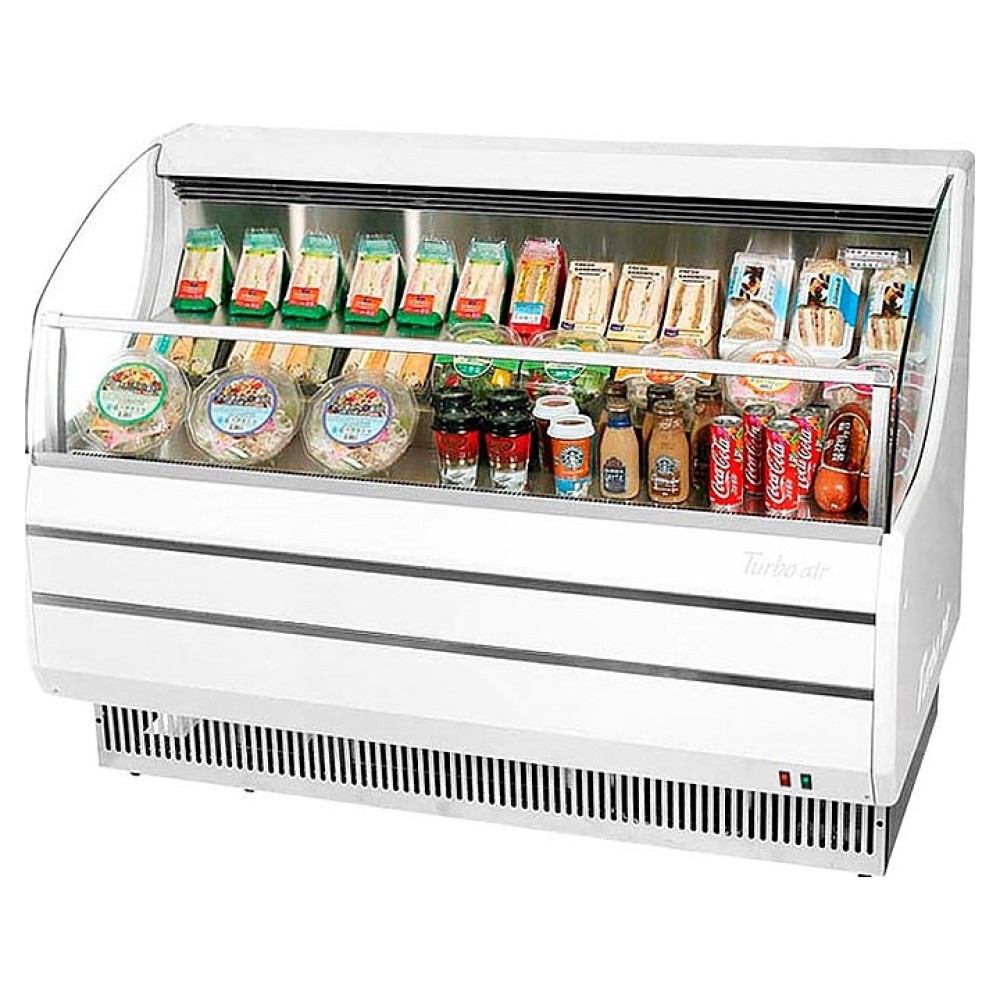 Горизонтальная открытая холодильная витрина Turbo air TOM-50L используется на предприятиях общественного питания и торговли для охлаждения, кратковременного хранения, демонстрации и продажи напитков, продуктов питания, салатов и других гастрономических изделий. Модель оснащена навесной полкой, стеклянными стенками, регулируемыми ножками и LED-подсветкой. Корпус и ножки выполнены из нержавеющей стали Posco.