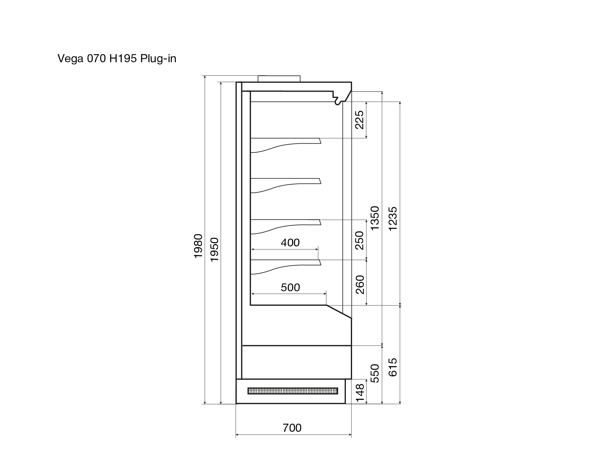Холодильная горка Dazzl Vega 070 H195 M 70 Plug-in предназначена для эффектной демонстрации и кратковременного предпродажного хранения предварительно охлажденной мясной продукции на предприятиях общественного питания и торговли. Модель оснащена подставкой с встроенным холодильным агрегатом, воздухопроводящими решетками и 4 навесными экспозиционными полками с наклонными профилями ценникодержателей.