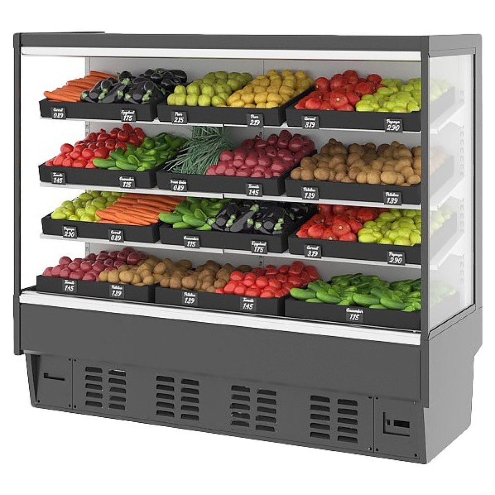 Холодильная горка Lida Stella-1 (2400х770х2000 мм) используется на предприятиях общественного питания и торговли для кратковременного хранения и предпродажной демонстрации фруктов и овощей. Модель оснащена подставкой с фронтальной термовыводящей решеткой и вертикально расположенным в задней стенке фирменным испарителем. Корпус выполнен из оцинкованной стали с антикоррозийным покрытием порошковой эмалью, трубки испарителя – из меди (Сербия), теплоизоляция – из пенополиуретана высокой плотности.