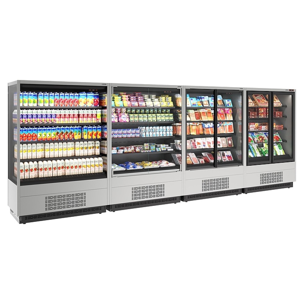 Морозильная горка Carboma FC 20-07 VL 1,3-1 версия 2.0 Standard серии Cube 2 используется на предприятиях общественного питания и торговли для кратковременного хранения и предпродажной демонстрации мяса, птицы и другой замороженной продукции. Модель оснащена 4 рядами навесных решетчатых полок с ограничителями, 2 распашными дверьми с рукоятками по всей длине створок, глухими боковинами, подставкой с фронтальной термовыводящей и цокольной решетками. Корпус прямоугольно ориентированной формы выполнен из стали с антикоррозийным покрытием внешних панелей и полок цвета нержавеющая сталь (RAL 0430), цоколя и дверных рам черного цвета (RAL 9005), теплоизоляция – из пенополиуретана.