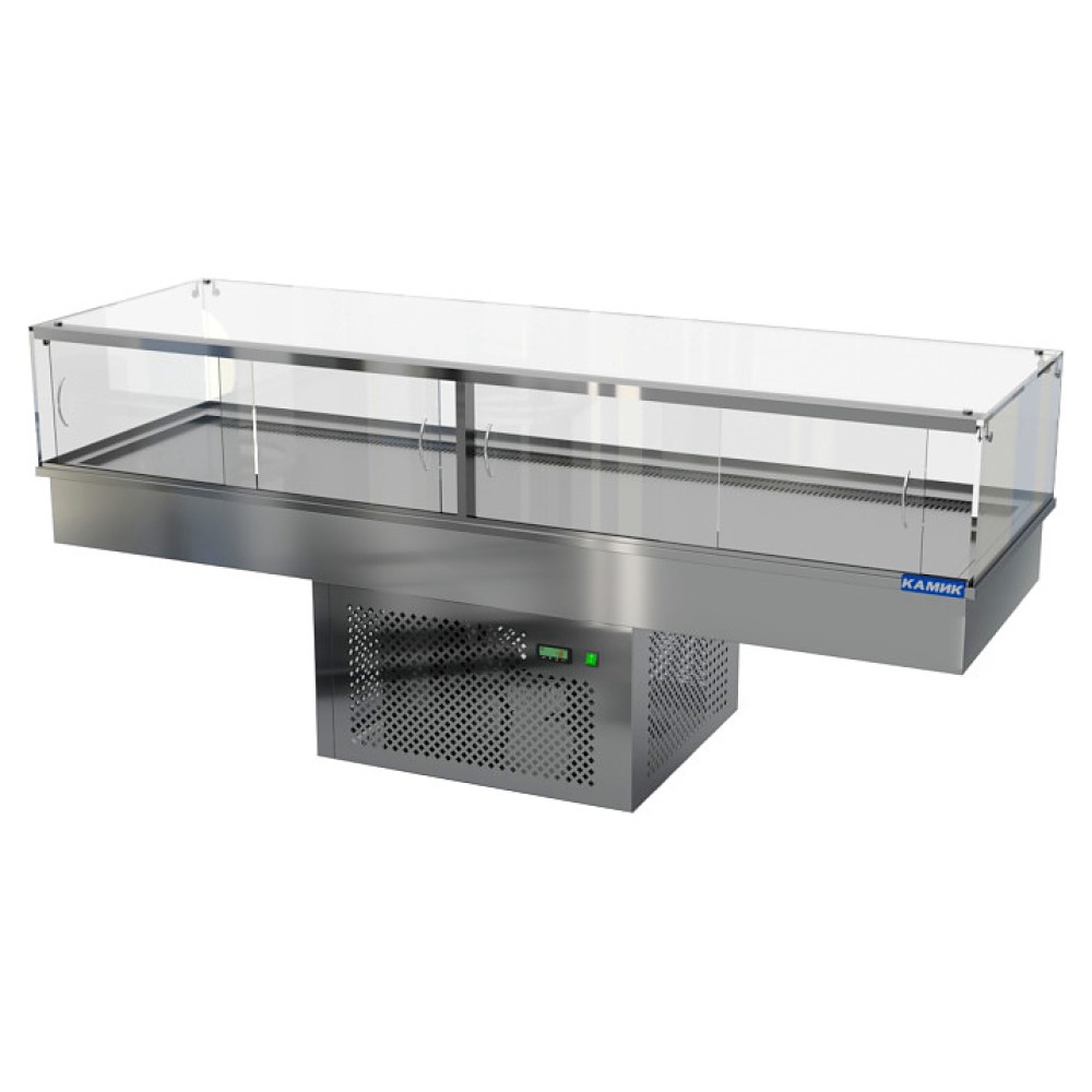 Встраиваемая холодильная витрина КАМИК ВХ-341636 используется на предприятиях общественного питания и торговли для охлаждения, демонстрации и кратковременного хранения продуктов и готовых блюд. Витрина оснащена куполом и подсветкой. Корпус выполнен из нержавеющей стали AISI 430 толщиной 1 мм, столешница - из нержавеющей стали AISI 304 толщиной 1 мм, купол - из каленого стекла толщиной 10 мм.