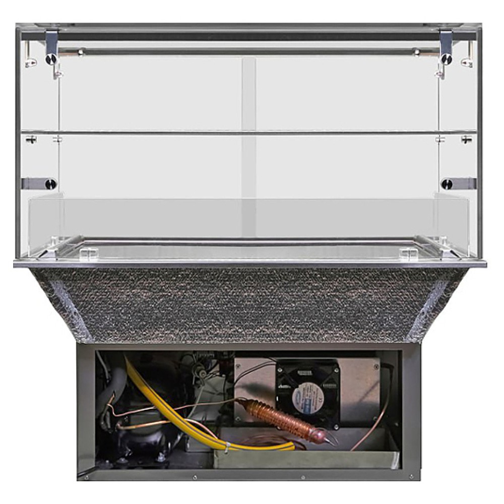 Встраиваемая холодильная витрина ТехноБалт Тикси DROP-IN 700х550х400 используется на предприятиях общественного питания и торговли для охлаждения, демонстрации и кратковременного хранения продуктов, напитков и готовых блюд. Модель оснащена 2 дверьми-купе со сторона продавца, полкой и светодиодными светильниками. Безрамочный купол и полка выполнены из закаленного стекла, двери-купе - из акрилового стекла, дно витрины в демонстрационной зоне - из нержавеющей стали AISI 304.