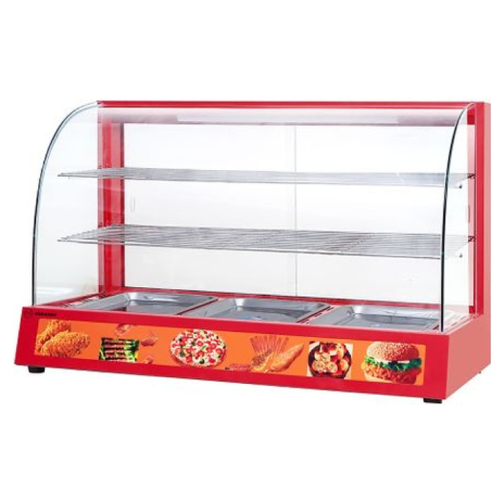 Тепловая витрина Hurakan HKN-WD3E предназначена для демонстрации, подогрева и кратковременного хранения готовых блюд на предприятиях общественного питания и торговли. Модель оснащена электромеханическим управлением и 3 полками-решетками. Корпус выполнен из окрашенного металла, полки-решетки и лотки - из полированной пищевой нержавеющей стали, стенки - из стекла.