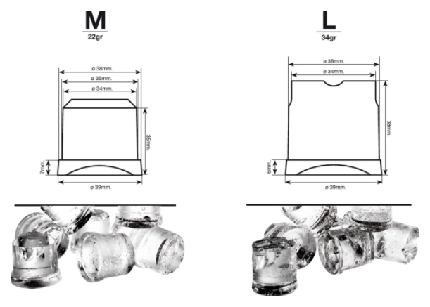 Оборудование работает по принципу распыления воды: на охлажденные формы в виде усеченного конуса снизу вверх под давлением через форсунки подается холодная вода. Нарастающий лед заполняет объем охлажденной формы, а затем обдается горячим паром хладагента, и готовые кусочки льда падают в бункер-накопитель.