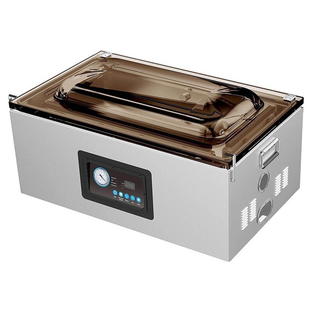 Вакуумный упаковщик INDOKOR IVP-686 используется на предприятиях общественного питания, торговли и промышленности различных направлений для упаковки ,пищевых продуктов, готовых блюд, медикаментов, косметики и других предметов в герметичную тару для сохранения свежести, предотвращения размножения микроорганизмов и смешивания запахов. Модель оснащена камерой с 2 поперечными сварочными пластинами и дополнительной продольной запаечной планкой, масляным вакуумным насосом, расположенной сверху крышкой и электронной панелью управления с цифровым дисплеем. Корпус и камера выполнены из высококачественной нержавеющей стали AISI304.