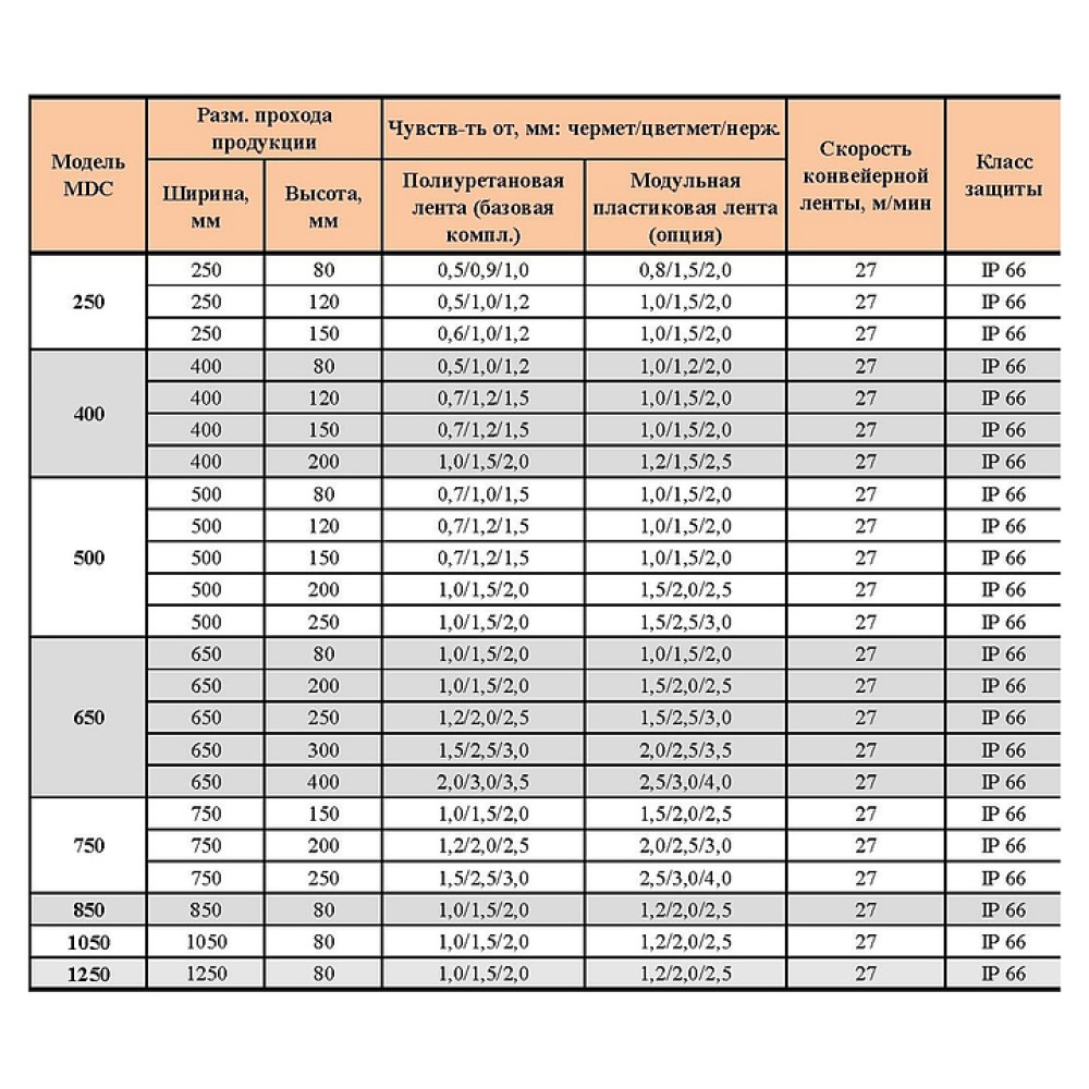 Металлодетектор METALLAR MDC-850 158537 предназначен для обнаружения частиц черных, цветных металлов и сплавов (латунь, медь, бронза, алюминий), нержавеющей стали в инспектируемой продовольственной или непродовольственной продукции. Модель позволяет предотвратить попадание металлических частиц в пищу и предотвратить травмы потребителей и повреждение оборудования. Корпус выполнен из нержавеющей стали, которая отличается прочностью и долговечностью, лента - из полиуретана (опционально модульная пластиковая).
