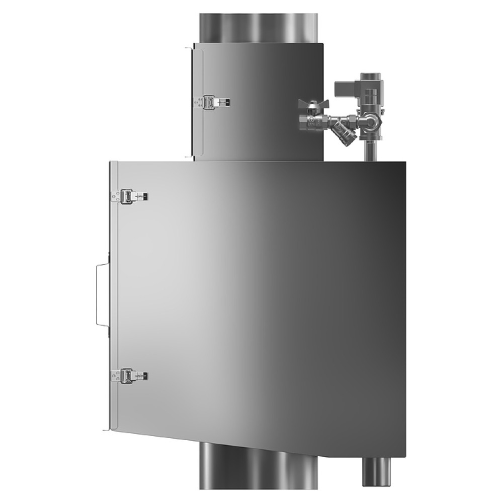 Искрогаситель ИСКРАЧ ТУШИЛА 1 ЛАЙТ 3750 предназначен для гашения искр пламени от мангалов, грилей и печей, предотвращения возгораний в дымоходах, охлаждения и частичной очистки воздуха от сажи на предприятиях общественного питания и торговли. Модель оснащена секциями орошения и влагоотделения, жироулавливающей кассетой, сетчатым фильтром, редуктором давления, фильтром грубой очистки воды, шаровым краном и дренажным патрубком. Фильтрующие кассеты выполнены из жаропрочных коррозионностойких материалов, что обеспечивает срок службы не менее 15 лет.