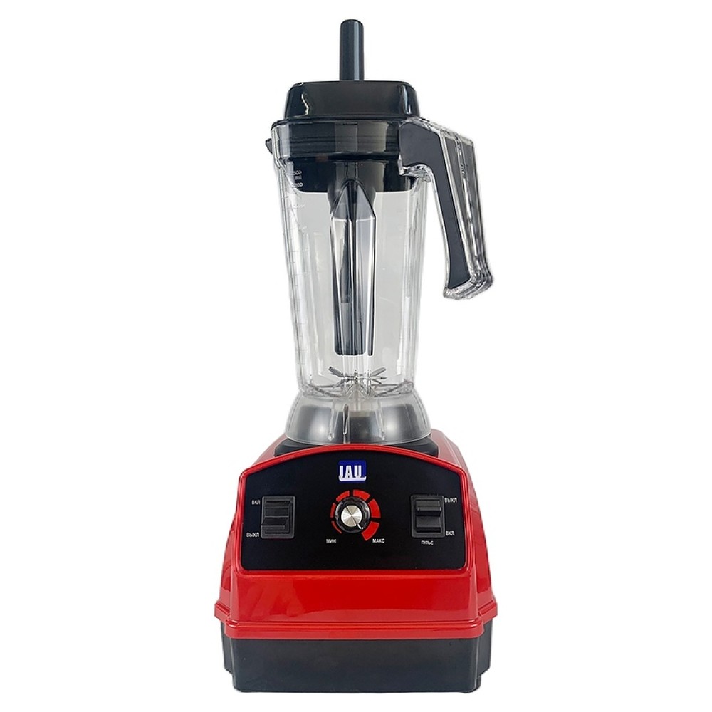 Стационарный блендер JAU BL-1800-2 предназначен для измельчения пищевых продуктов и приготовления муссов, смузи, фраппе, соусов, коктейлей, фруктовых и овощных пюре на предприятиях общественного питания и торговли, а также в домашних условиях. Модель оснащена профессиональным высокоскоростным двигателем 9540 и расположенной на наклонной фронтальной стенке электромеханической панелью управления. Корпус выполнен из пластика в комбинации красного и черного тонов, кувшин – из ударопрочного пластика, ножи – из нержавеющей стали.