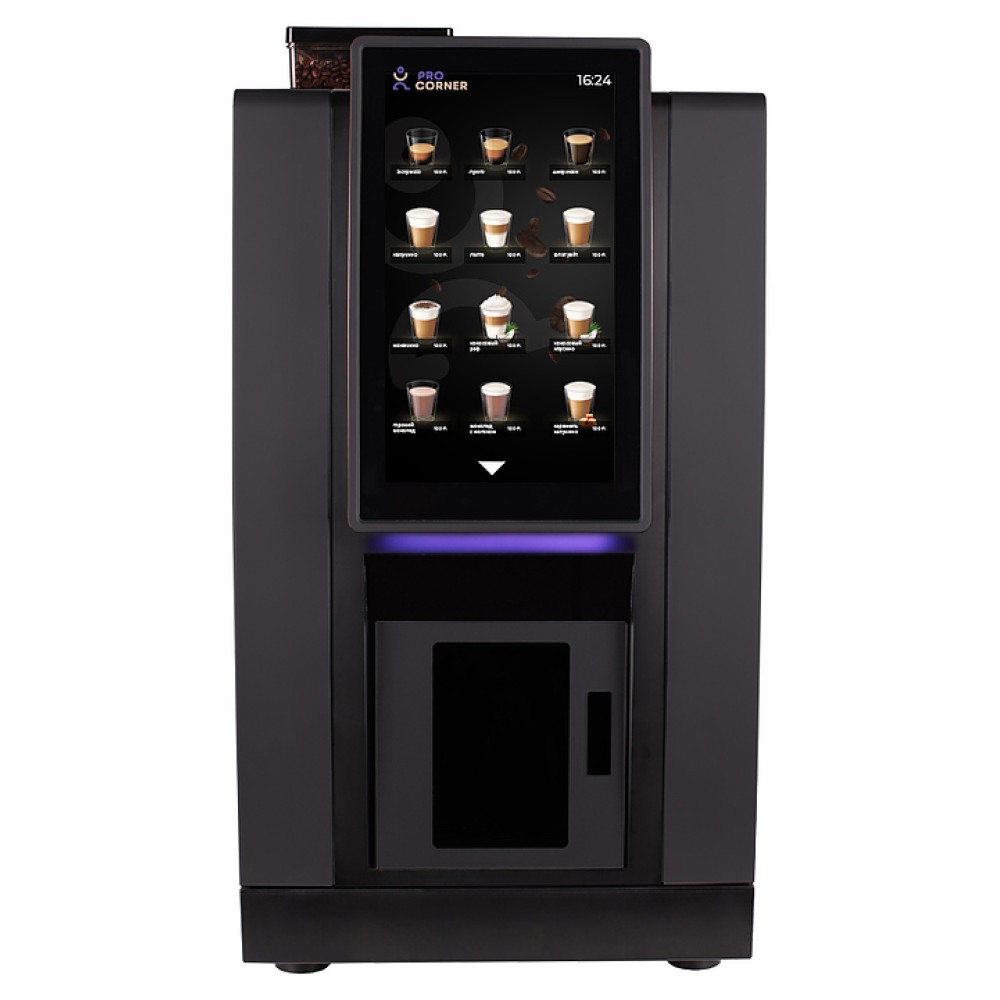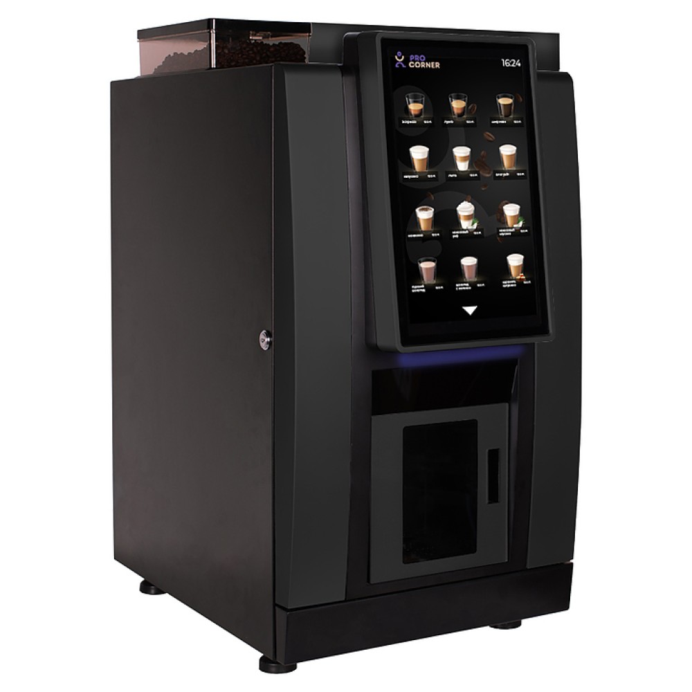 В комплект поставки входят: бункер для зерна, 4 бункера для растворимых ингредиентов, бункер для сбора кофейного жмыха, каплесборник и помпа для работы от бутилированной воды.