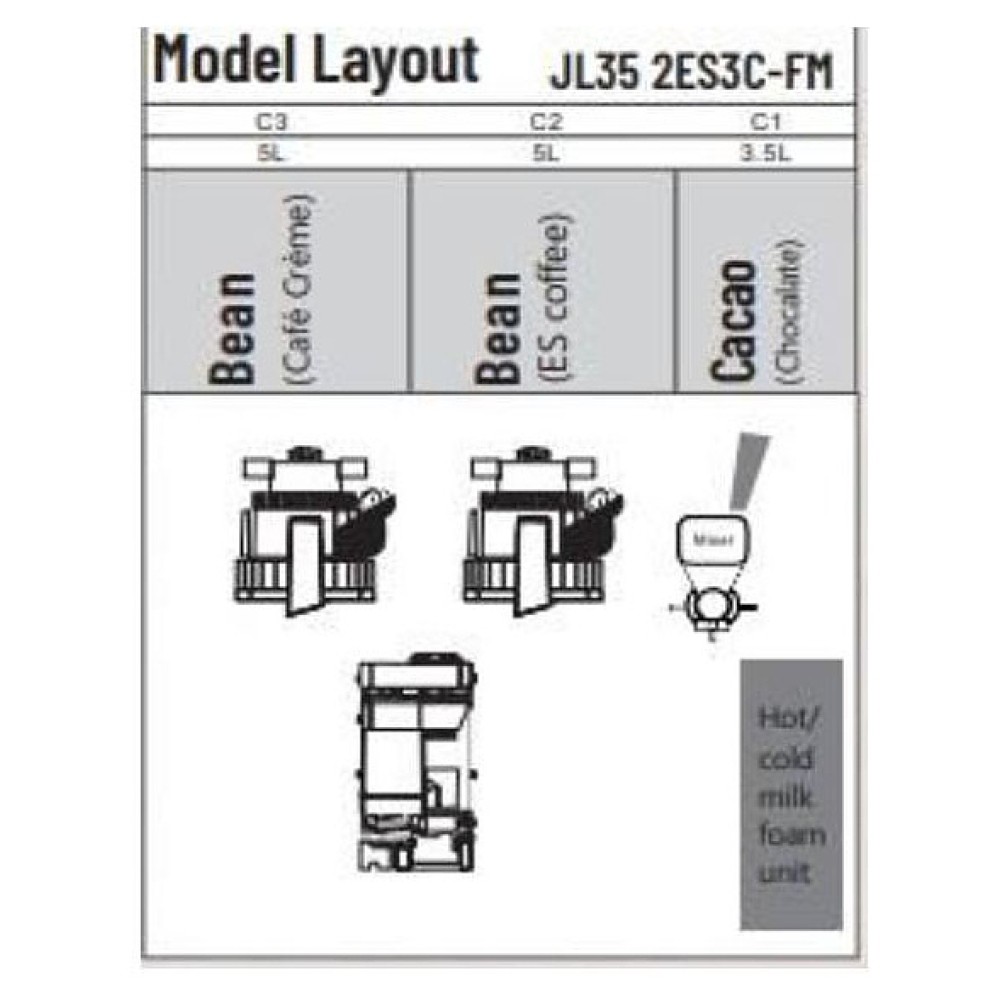 Кофемашина Jetinno JL35-2ES3C-FM предназначена для приготовления эспрессо и других кофейных напитков в кофейнях, барах, ресторанах, офисах и отелях. Модель оснащена дисплеем выбора напитков, 2 бункерами для кофейных зерен, 2 кофемолками Jetinno Patent Grinder, бункерами для растворимых ингредиентов и встроенной телеметрией.