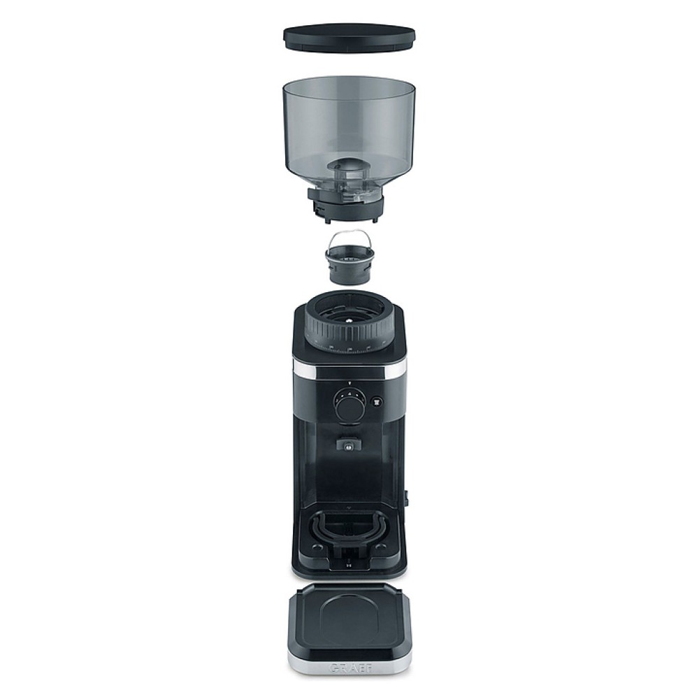 Кофемолка Graef CM 502 предназначена для получения молотого кофе из зерен в частных домах и квартирах. Модель оснащена бункером для кофейных зерен и отсеком для хранения аксессуаров. Корпус выполнен из пластика со вставками из нержавеющей стали, конические жернова - из нержавеющей стали.