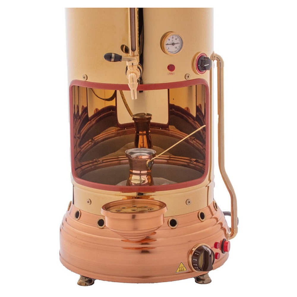 Кофе на песке JOHNY AK/8-2 N используется в специализированных кофейных заведениях для приготовления кофе по-восточному (на песке). В наполненную нагретым до нужной температуры песком платформу устанавливается джезва с водой и перемолотым кофе. Равномерный прогрев, обеспечиваемый нагревательным элементом из алюминия, и медленное томление придают напитку натуральный яркий вкус и насыщенный аромат. Модель оснащена резервуаром для подогрева воды, которую можно тут же использовать для приготовления кофе.