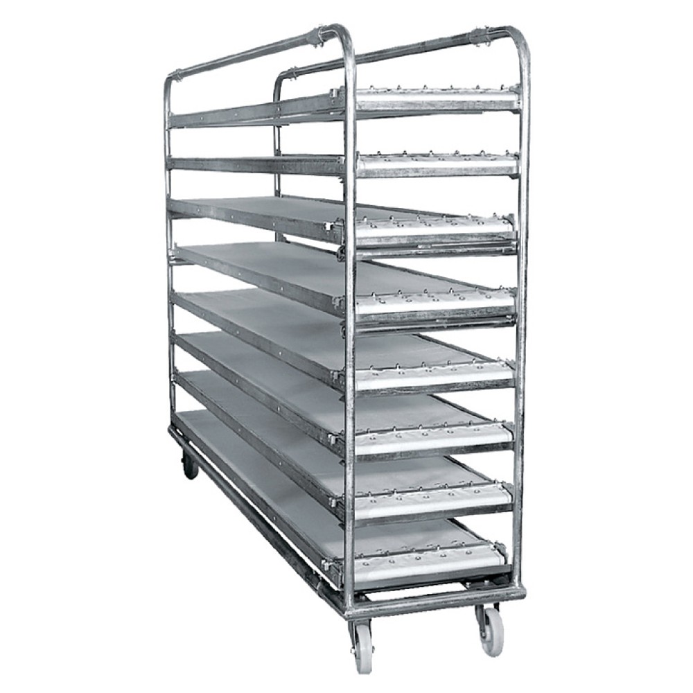 Тележка-шпилька Kumkaya PA 180 P используется для хранения и перемещения поддонов и посадчиков для подовых печей на предприятиях общественного питания и торговли. Модель оснащена поворотными капроновыми колесами. Оборудование выполнено из нержавеющей стали.