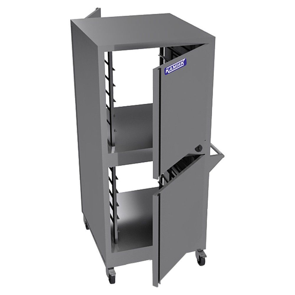Тепловой шкаф КАМИК ШТ-77855 используется на предприятиях общественного питания и торговли для подогрева, демонстрации и кратковременного хранения готовых блюд в горячем состоянии. Модель оснащена распашными дверями. Корпус выполнен из нержавеющей стали AISI 430 толщиной 1 мм.