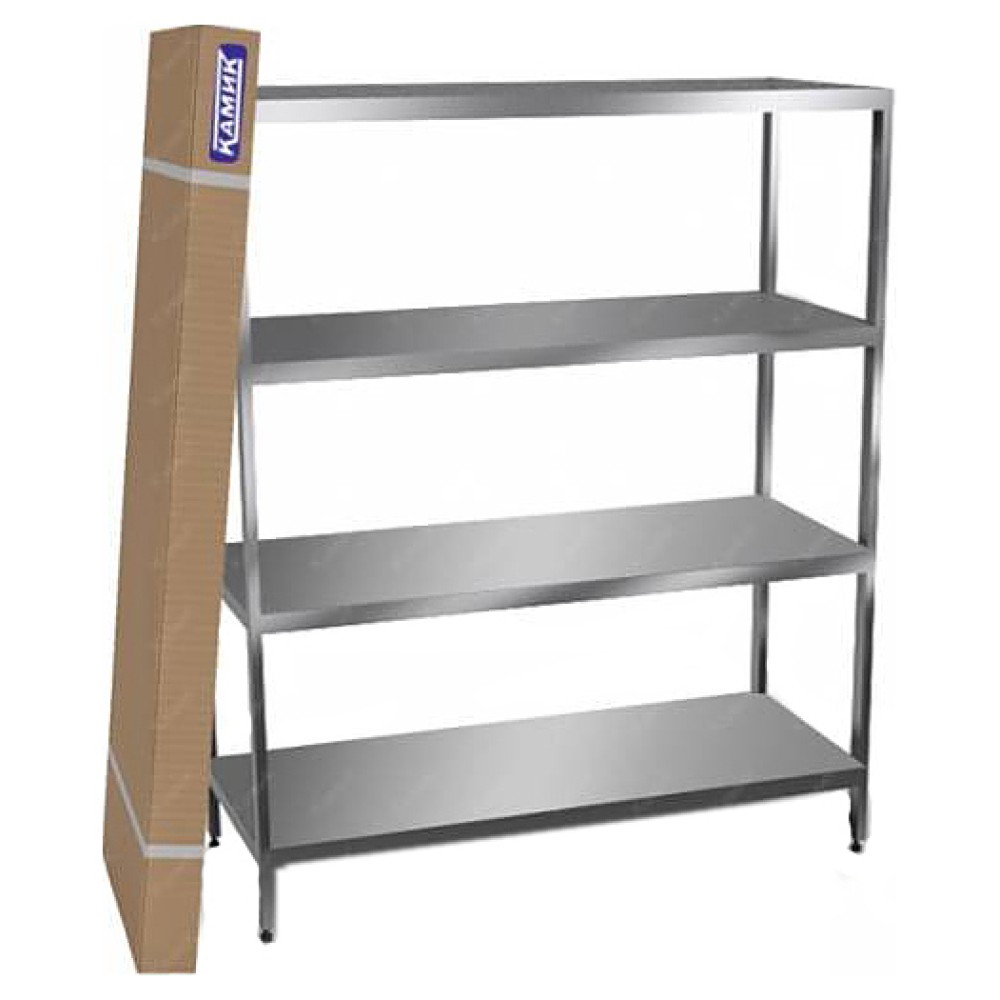 Кухонный стеллаж КАМИК Ст-Р-3114 предназначен для хранения посуды, кухонных приборов и принадлежностей, а также продуктов, не требующих специального температурного режима, на предприятиях общественного питания и торговли. Модель оснащена 4 регулируемыми по высоте полками. Разборный каркас выполнен из трубы 40x20 мм нержавеющей стали AISI 304, полки - из нержавеющей стали AISI 304.