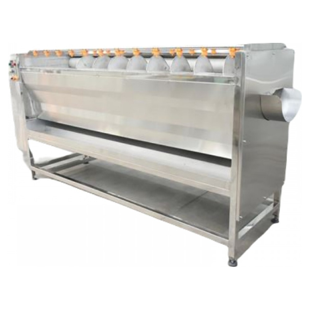Овощечистка Hualian SX1500B используется на предприятиях пищевой промышленности, общественного питания и торговли для автоматической мойки и очистки от кожуры корнеплодов, а также твердых овощей и фруктов путем их трения о вращающиеся валы. Модель оснащена расположенным сверху трубопроводом с форсунками для подачи воды, рабочей камерой с 9 щеточными валами и электромеханической панелью управления. Щетина валов выполнена из нейлона.