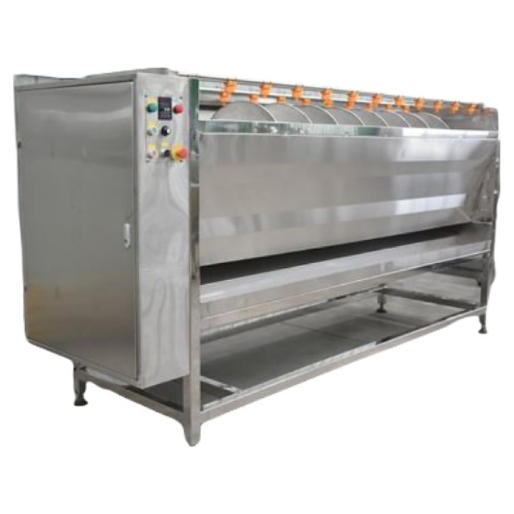 Овощечистка Hualian SX2600C используется на предприятиях пищевой промышленности, общественного питания и торговли для автоматической мойки и очистки корнеплодов, а также твердых овощей и фруктов путем их трения о вращающиеся валы. Модель оснащена расположенным сверху трубопроводом с форсунками для подачи воды, рабочей камерой с 9 щеточными валами и электромеханической панелью управления. Щетина валов выполнена из нейлона.