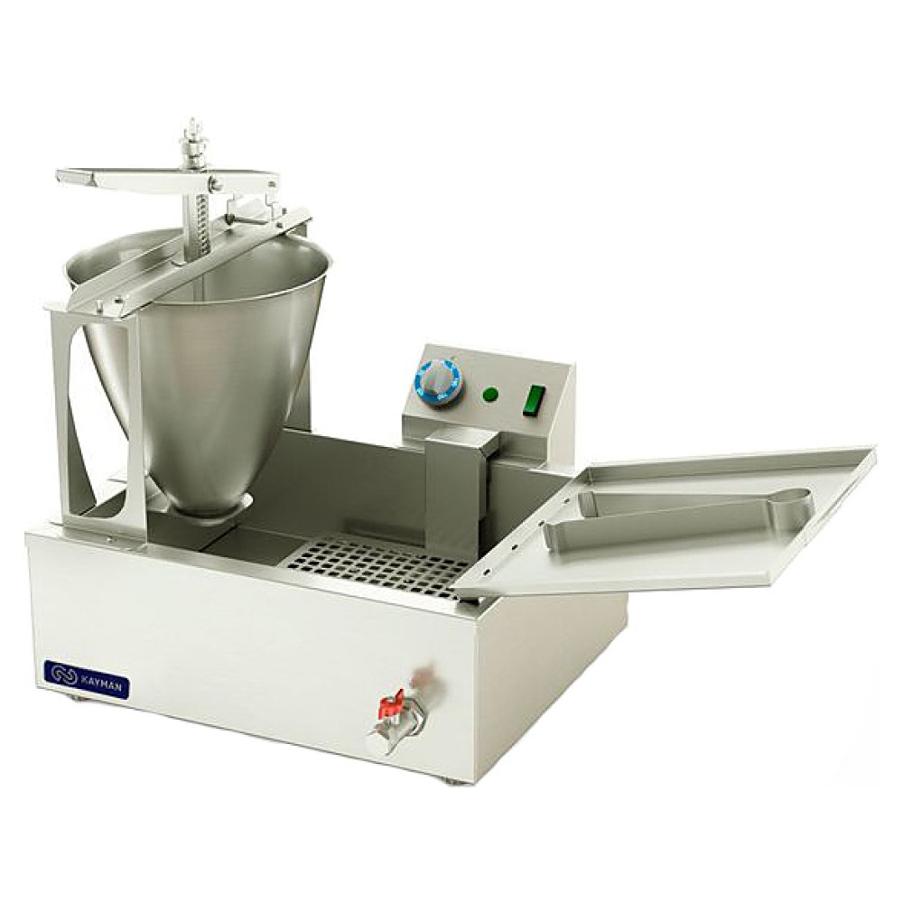 Пончиковый аппарат KAYMAN ПА-200 А используется на предприятиях общественного питания и торговли для формирования и приготовления в разогретом масле пончиков традиционной формы. Модель состоит из фритюрной ванны, ручного дозатора, блока управления с электронагревателем и и поддона для выкладки пончиков со специальными отверстиями для стекания излишков масла. Все части аппарата выполнены из нержавеющей стали.