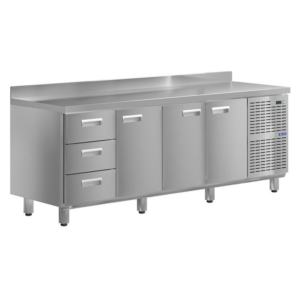 Холодильный стол KAYMAN KСХ-3111/60 предназначен для охлаждения, хранения и обработки пищевых продуктов в ресторанах, барах, кафе, столовых, на профессиональных кухнях и пищевых производствах. Конструкция двери позволяет осуществлять быструю загрузку и выгрузку продуктов, на прочной столешнице можно резать, раскатывать и отбивать полуфабрикаты. Модель оснащена 3 дверьми и 3 ящиками. Изделие выполнено из высококачественной нержавеющей стали, отличающейся прочностью и долговечностью.