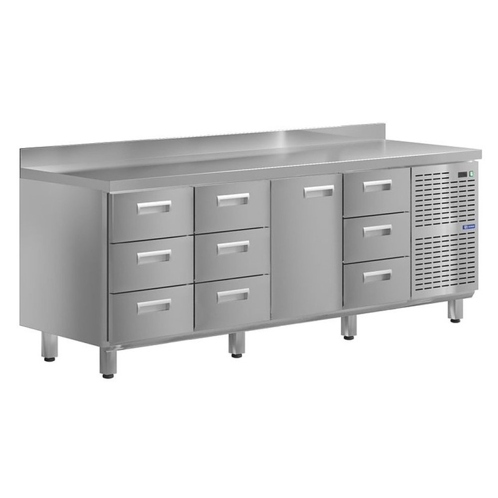 Холодильный стол KAYMAN KСХ-3313/70 предназначен для охлаждения, хранения и обработки пищевых продуктов в ресторанах, барах, кафе, столовых, на профессиональных кухнях и пищевых производствах. Конструкция двери позволяет осуществлять быструю загрузку и выгрузку продуктов, на прочной столешнице можно резать, раскатывать и отбивать полуфабрикаты. Модель оснащена дверью и 9 ящиками. Изделие выполнено из высококачественной нержавеющей стали, отличающейся прочностью и долговечностью.
